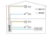 有线控制有线控制的结构为将控制器放置于强电箱内,开关和中控主机分别通过弱电控制线路进行控制